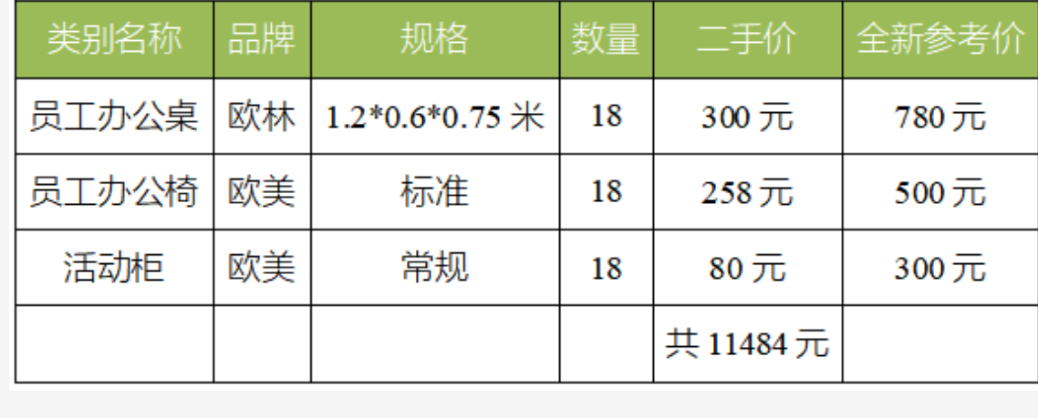 接下來老有二手辦公家具桌椅出售服務公司列出一組辦公家具出售清單并標明二手價格和新價格供您參考:
